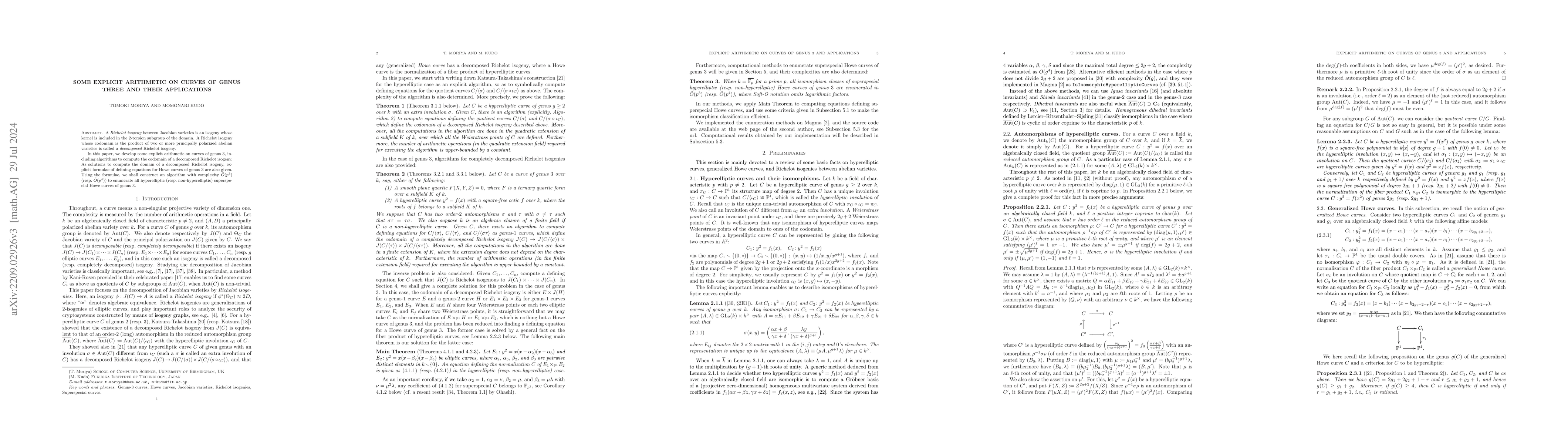 This paper develops explicit arithmetic methods for genus three curves, focusing on Richelot isogenies. It provides algorithms for computing the codomain of decomposed Richelot isogenies and explicit formulae for defining equations of Howe curves, leading to an enumeration algorithm for superspecial curves with complexity $\tilde{O}(p^3)$ for hyperelliptic and $\tilde{O}(p^4)$ for non-hyperelliptic cases.
