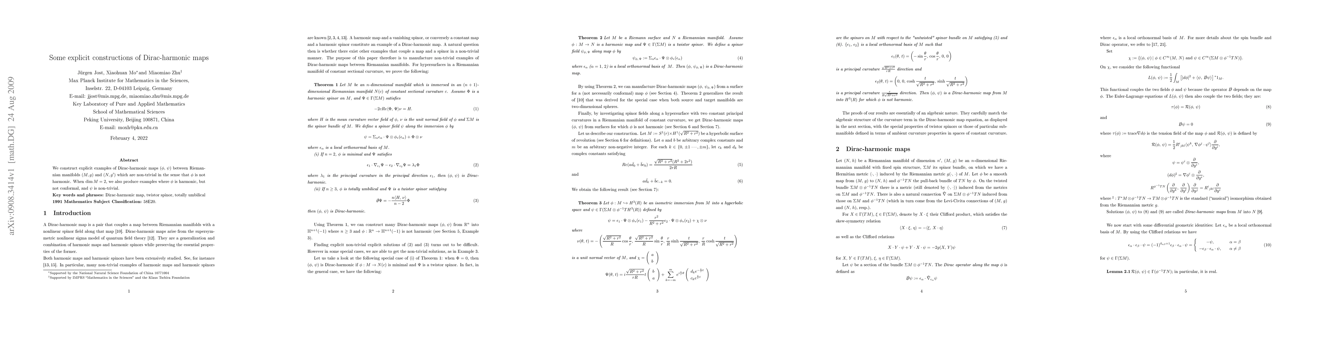 This paper presents explicit examples of Dirac-harmonic maps $(\phi, \psi)$ between Riemannian manifolds, where $\phi$ is non-harmonic yet non-trivial. For $\dim M=2$, it shows cases where $\phi$ is harmonic but not conformal, and $\psi$ remains non-trivial.