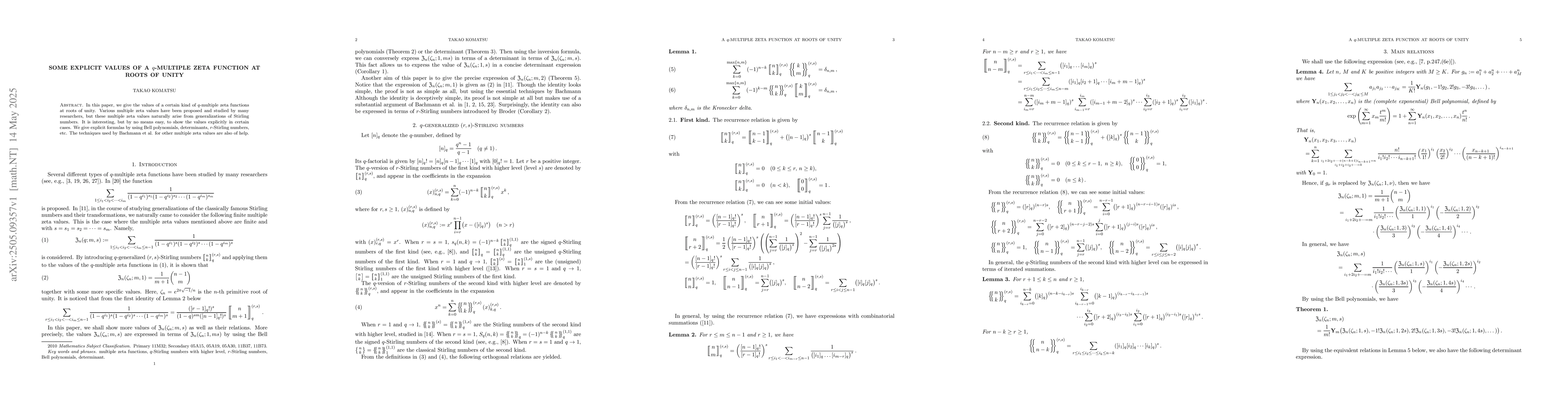 The development of explicit formulas for $q$-multiple zeta functions at roots of unity using Bell polynomials, determinants, and $r$-Stirling numbers.