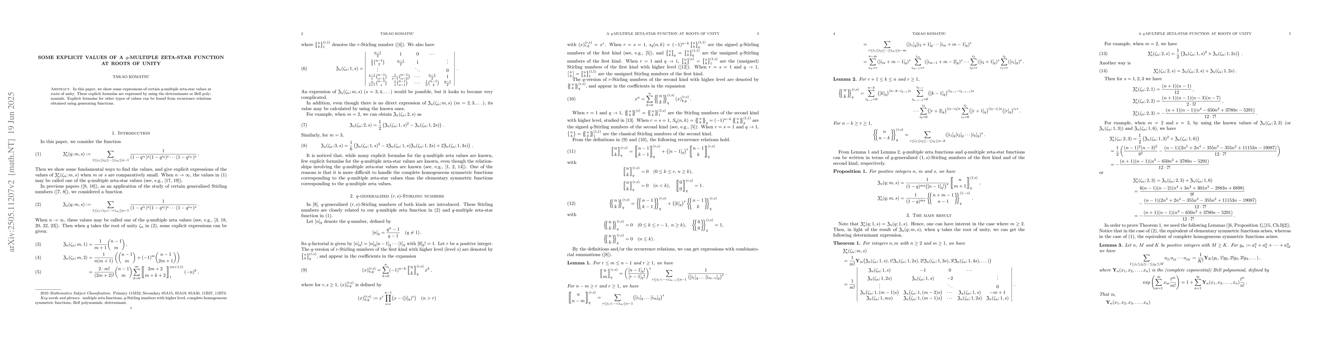 The research derives explicit formulas for q-multiple zeta-star values at roots of unity using determinants or Bell polynomials, and recurrence relations from generating functions.