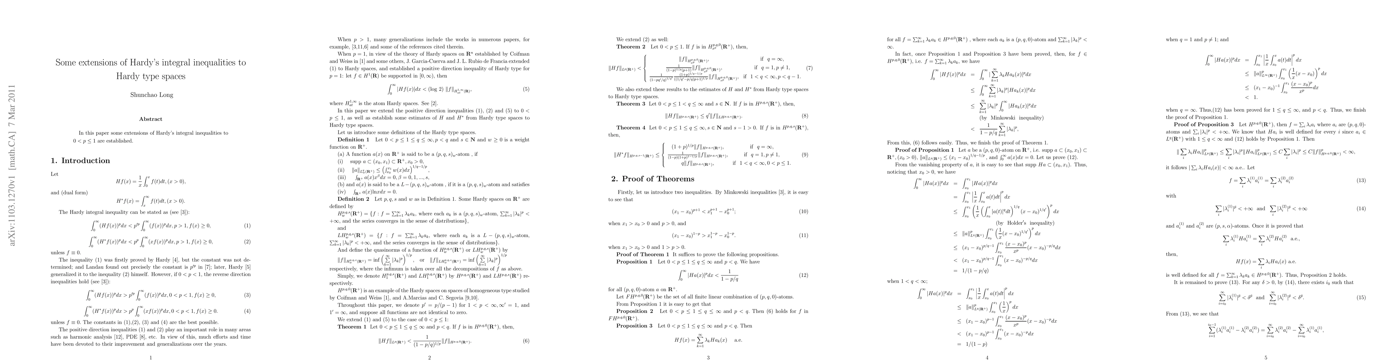 In this paper some extensions of Hardy's integral inequalities to $0