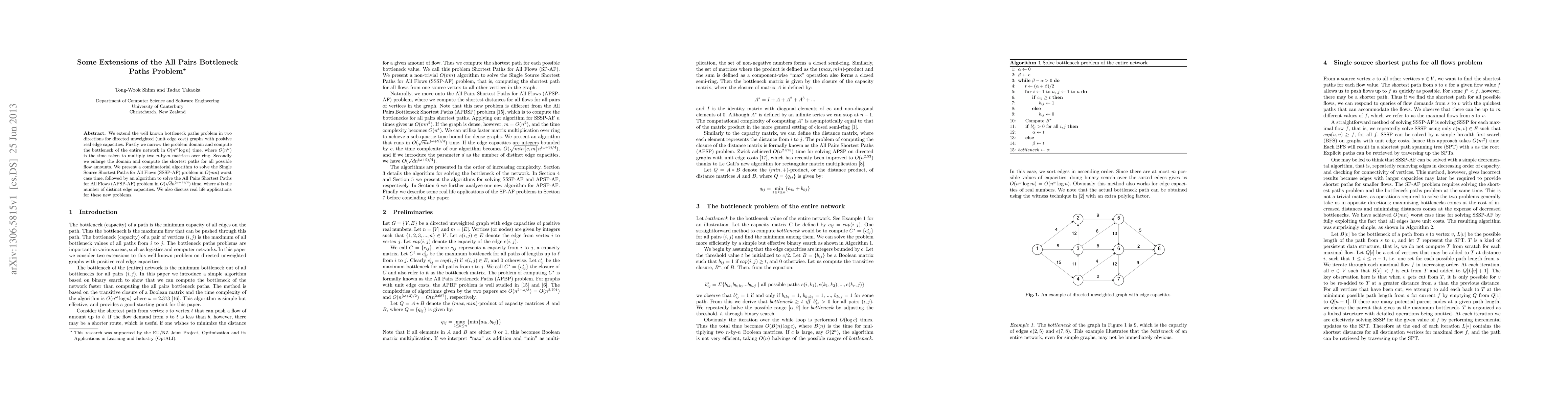 This paper extends the bottleneck paths problem in two directions: it computes the bottleneck for an entire network in $O(n^{\omega}\log{n})$ time and solves the All Pairs Shortest Paths for All Flows (APSP-AF) in $O(\sqrt{d}n^{(\omega+9)/4})$ time, discussing real-life applications for these advancements.