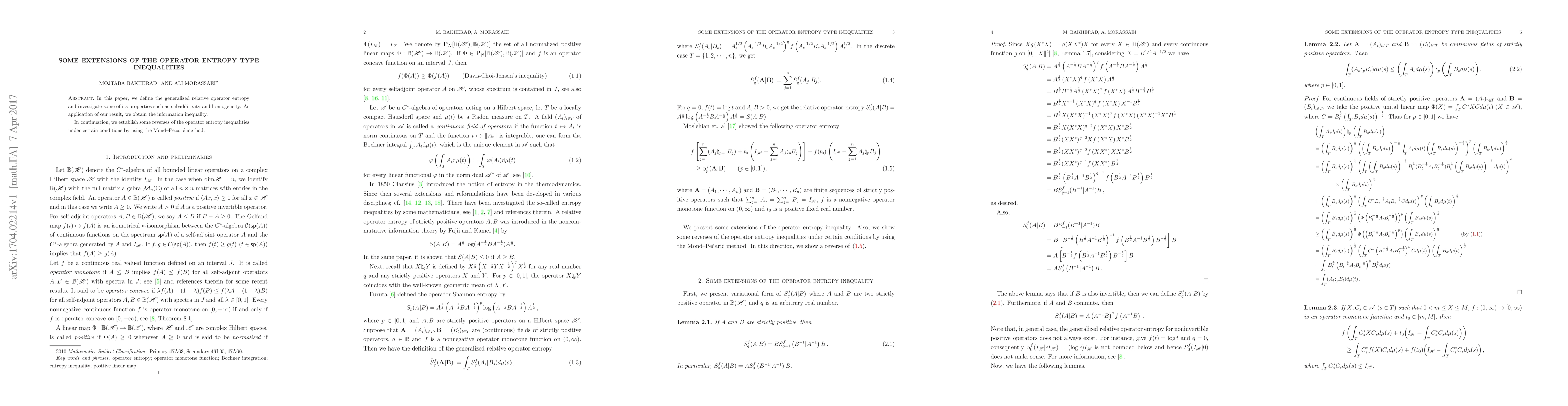 This paper establishes reverses of operator entropy inequalities using the Mond-Pe{ȱariżić} method, providing a new bound on the difference between two random variables.