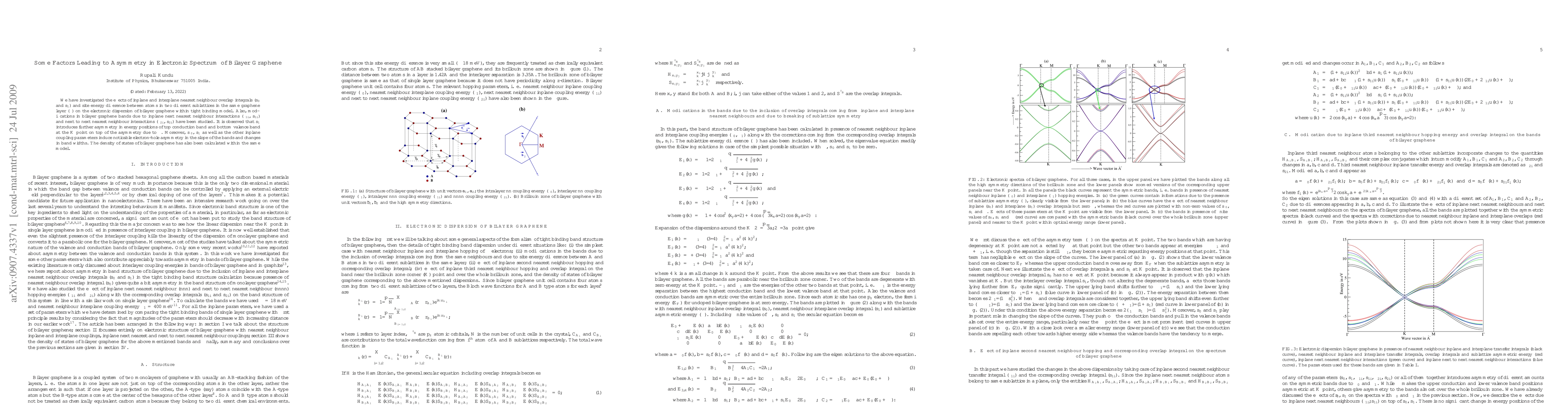 This study explores how various nearest and next-nearest neighbour overlap integrals and site energy differences impact the electronic dispersion in bilayer graphene, revealing that $s_1$ and $inplane$ interactions lead to asymmetry in energy levels and band slopes, and affect the density of states.