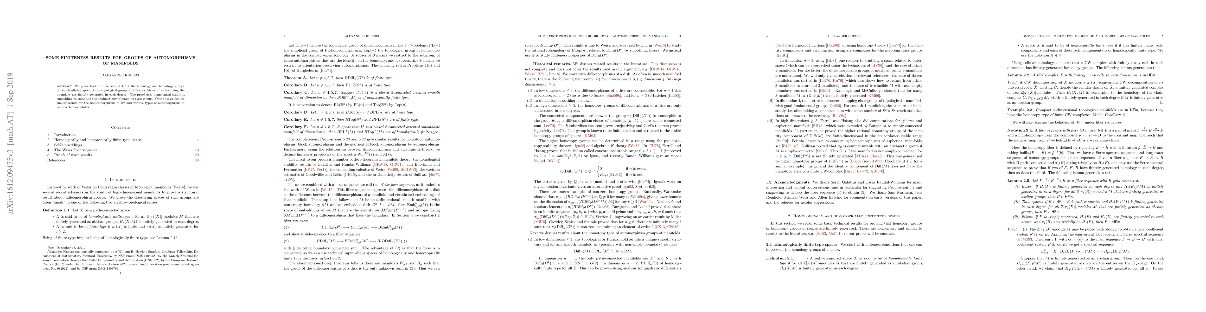 We prove that in dimensions not equal to 4, 5, or 7, the homology and homotopy groups of the classifying space of the topological group of diffeomorphisms of a disk fixing the boundary are finitely generated in each degree. The proof uses homological stability, embedding calculus and the arithmeticity of mapping class groups. From this we deduce similar results for the homeomorphisms of $R^n$ and various types of automorphisms of 2-connected manifolds.