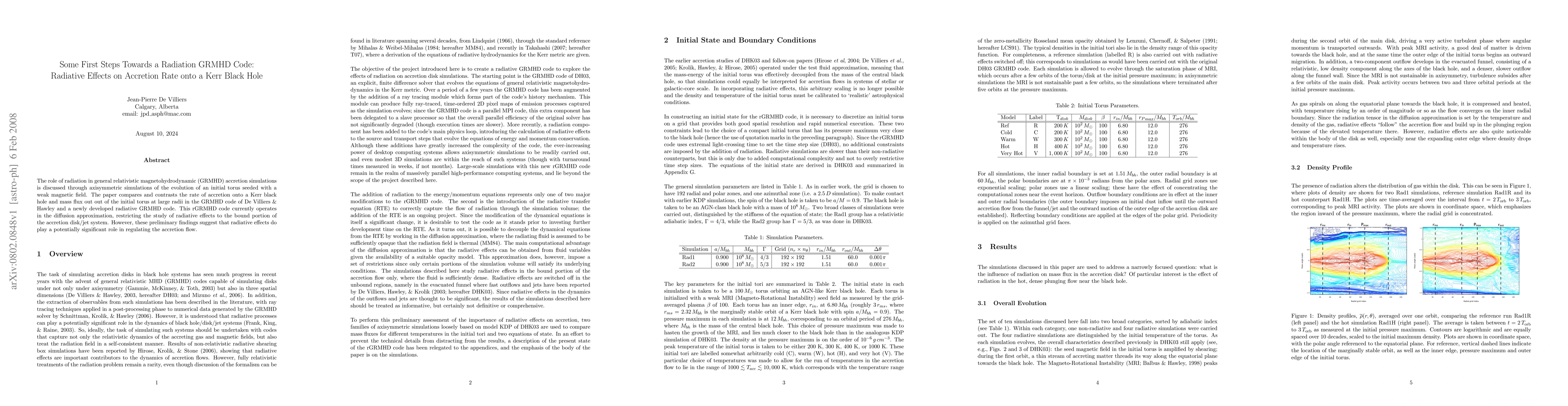 The role of radiation in general relativistic magnetohydrodynamic (GRMHD) accretion simulations is discussed through axisymmetric simulations of the evolution of an initial torus seeded with a weak magnetic field. The paper compares and contrasts the rate of accretion onto a Kerr black hole and mass flux out out of the initial torus at large radii in the GRMHD code of De Villiers and Hawley and a newly developed radiative GRMHD code. This rGRMHD code currently operates in the diffusion approximation, restricting the study of radiative effects to the bound portion of the accretion disk/jet system. However, these preliminary findings suggest that radiative effects do play a potentially significant role in regulating the accretion flow.