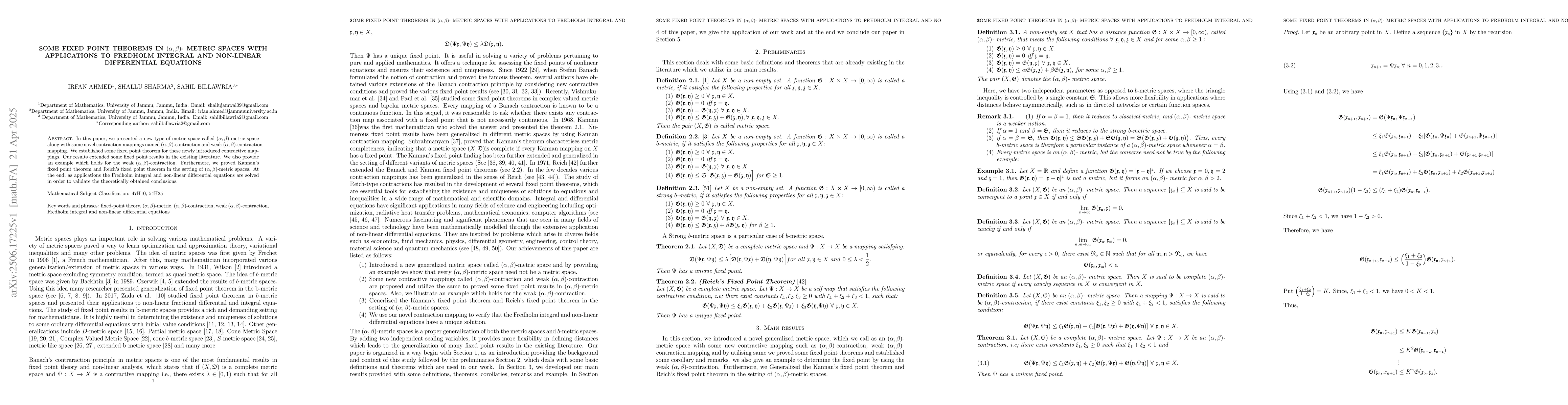 In this paper, we presented a new type of metric space called $(\alpha,\beta)$-metric space along with some novel contraction mappings named $(\alpha,\beta)$-contraction and weak $(\alpha,\beta)$-contraction mapping. We established some fixed point theorem for these newly introduced contractive mappings. Our results extended some fixed point results in the existing literature. We also provide an example which holds for the weak $(\alpha,\beta)$-contraction. Furthermore, we proved Kannan's fixed point theorem and Reich's fixed point theorem in the setting of $(\alpha,\beta)$-metric spaces. At the end, as applications the Fredholm integral and non-linear differential equations are solved in order to validate the theoretically obtained conclusions