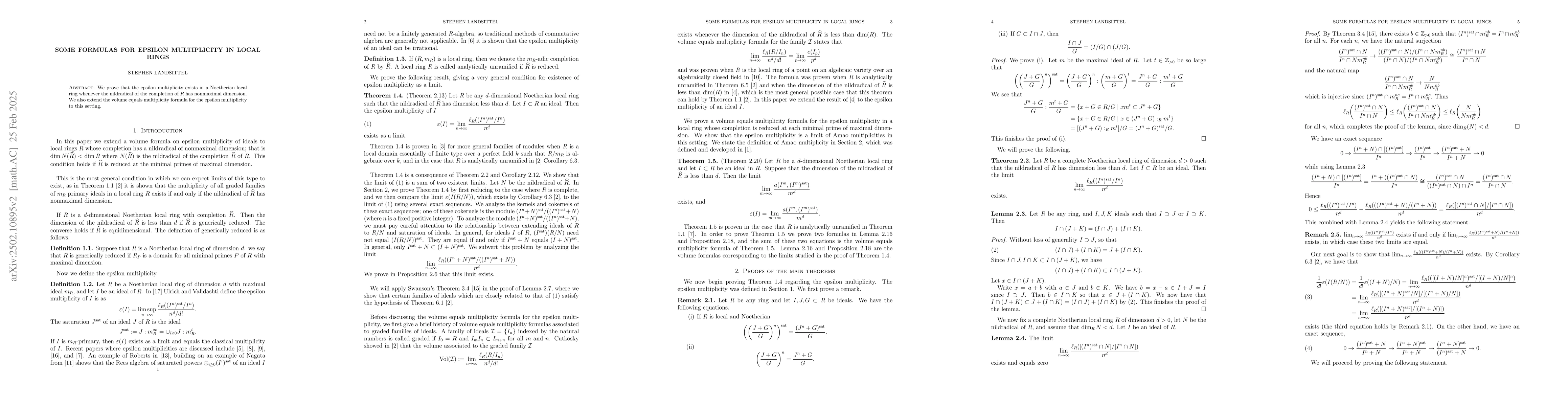 The paper proves the existence of epsilon multiplicity under certain conditions and establishes a relationship between volume and multiplicity, extending known results in local algebra.