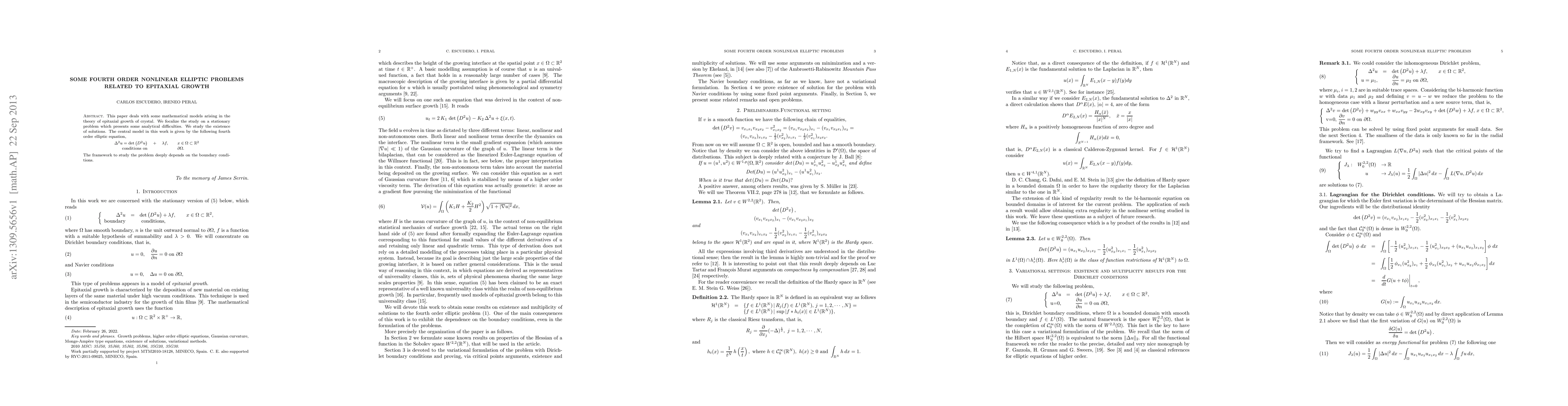 Researchers studied a mathematical model for epitaxial growth of crystals, exploring the existence of solutions to a fourth-order nonlinear elliptic equation with varying boundary conditions.