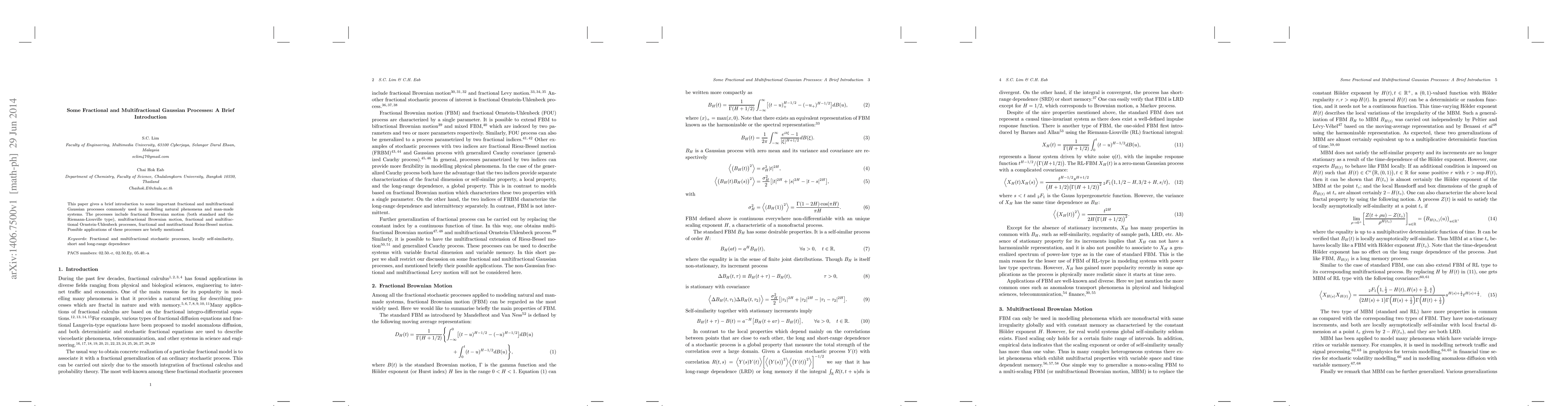 This paper provides a concise introduction to various fractional and multifractional Gaussian processes, including fractional Brownian motion, multifractional Brownian motion, and fractional Ornstein-Uhlenbeck processes, highlighting their applications in modeling natural phenomena and man-made systems. Brief mentions of their potential uses are also included.