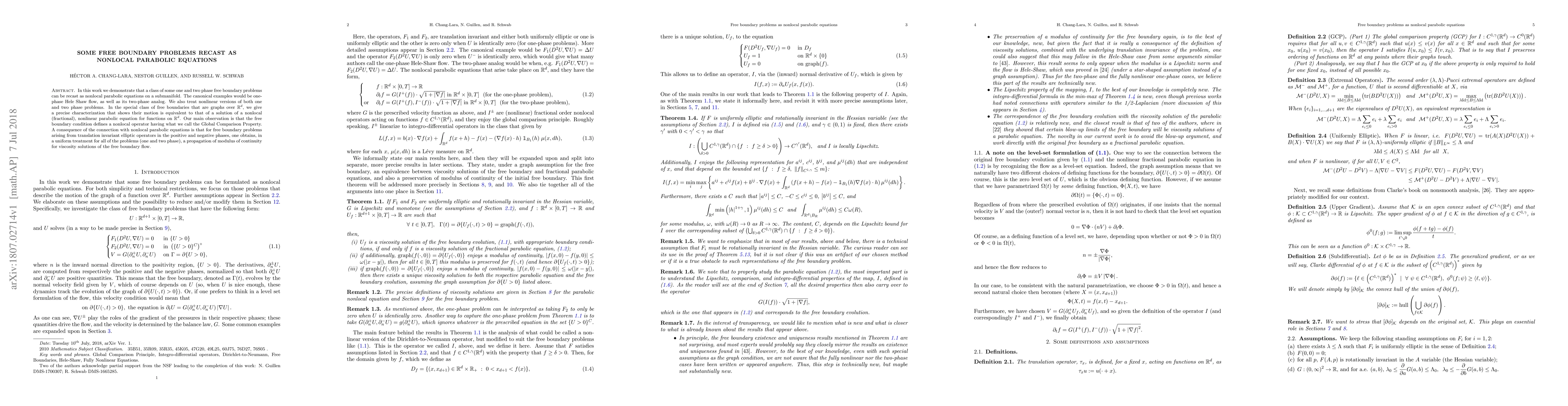 This paper recasts certain one and two phase free boundary problems as nonlocal parabolic equations on a submanifold, demonstrating that the free boundary condition defines a nonlocal operator with a Global Comparison Property. The study also provides a propagation of modulus of continuity for viscosity solutions of the free boundary flow.