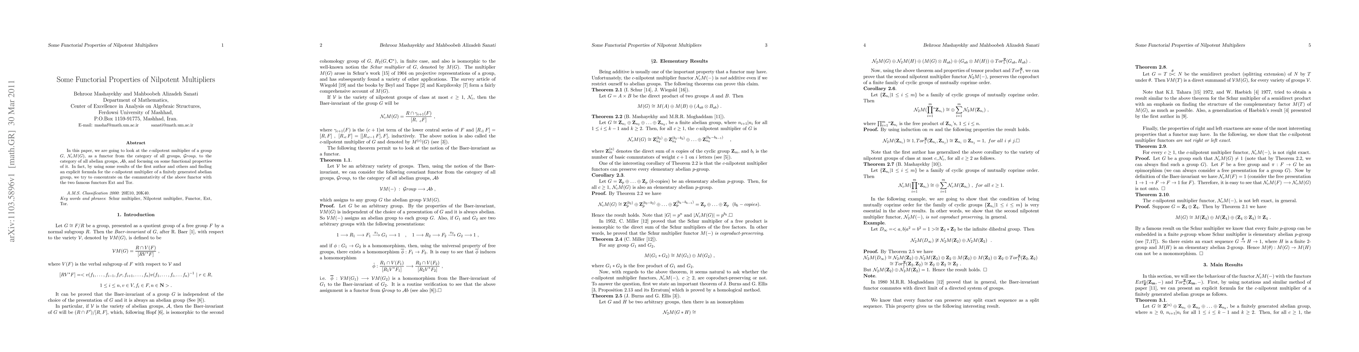 This paper investigates the functorial properties of the $c$-nilpotent multiplier of a group, focusing on its commutativity with Ext and Tor functors, providing an explicit formula for its behavior in finitely generated abelian groups.