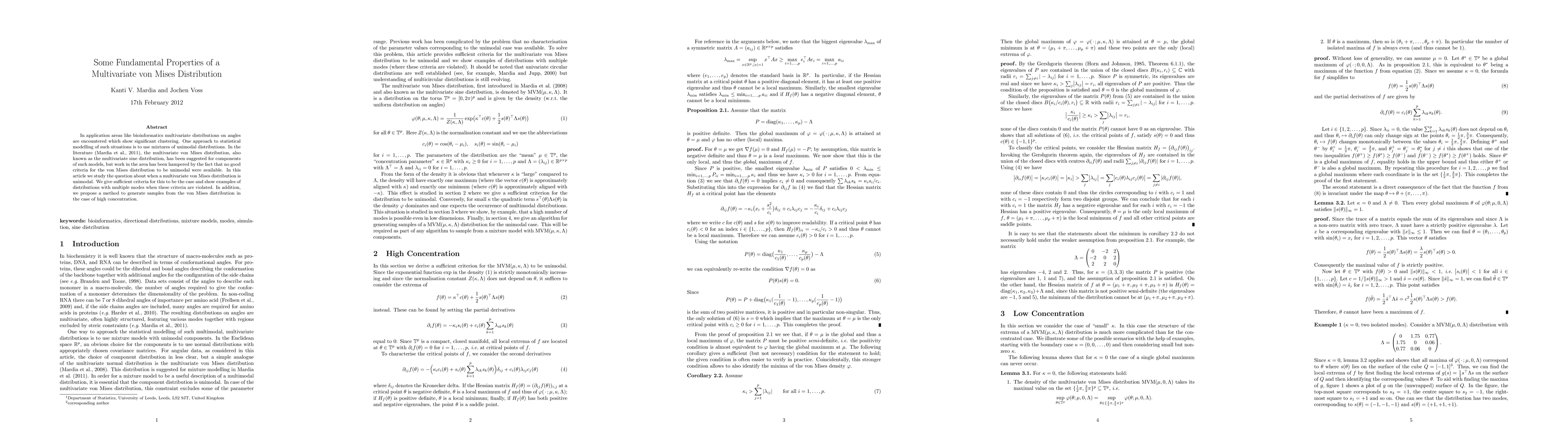 This paper investigates the conditions under which a multivariate von Mises distribution is unimodal, providing sufficient criteria for unimodality and demonstrating cases with multiple modes when these criteria fail. It also introduces a method for generating samples from the distribution in scenarios of high concentration.