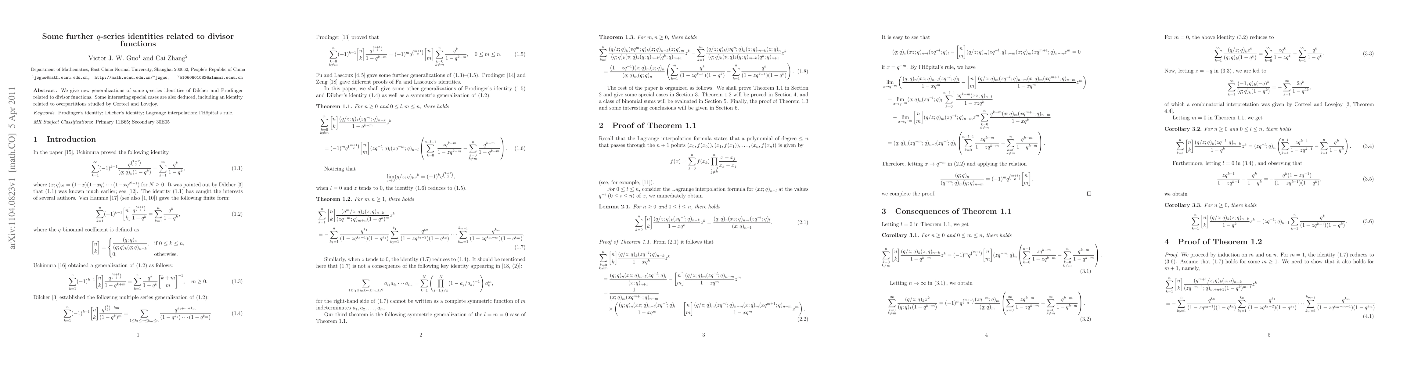 The paper introduces novel q-series identities and their generalizations, along with proofs and corollaries that extend previous work by Dilcher and Prodinger.