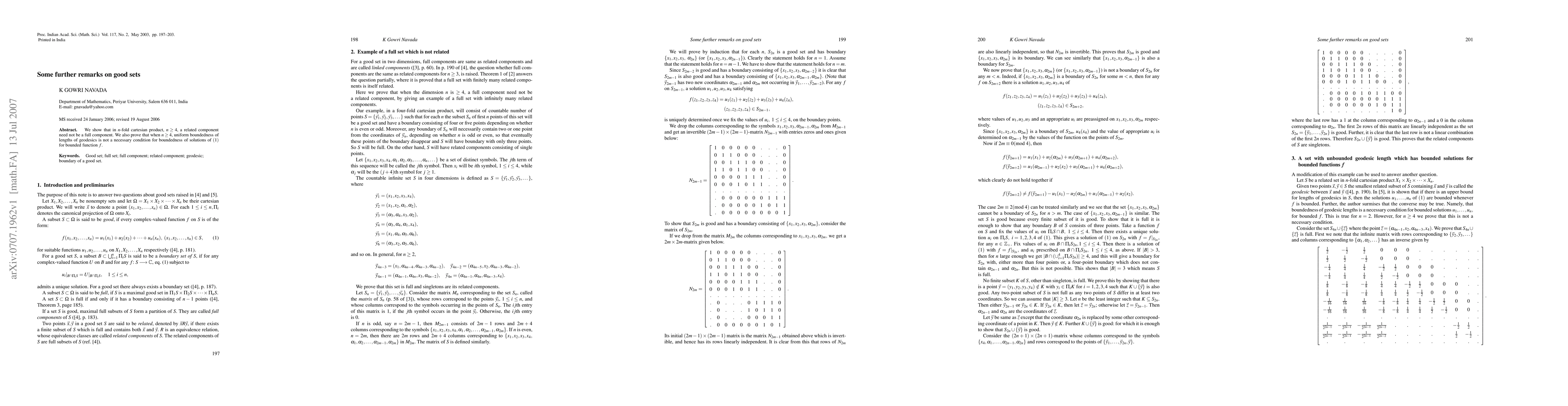 We show that in n-fold cartesian product, n >= 4, a related component need not be a full component. We also prove that when n >= 4, uniform boundedness of lengths of geodesics is not a necessary condition for boundedness of solutions of (1) for bounded function f.