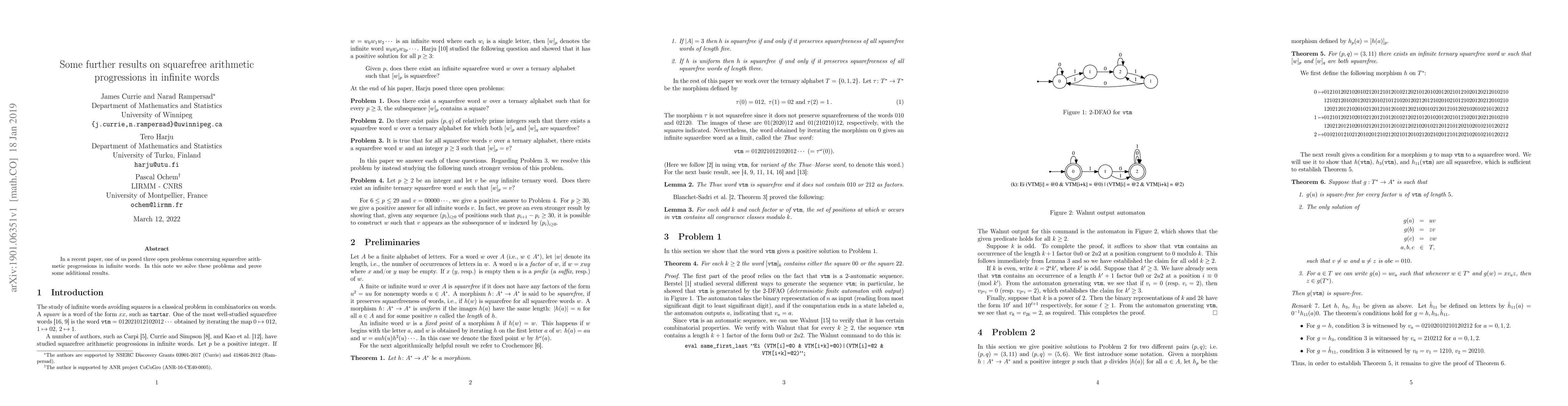 This research paper resolves previously posed open problems regarding squarefree arithmetic progressions in infinite words and presents supplementary findings on the subject. The authors contribute new insights into the structure and properties of these mathematical sequences.