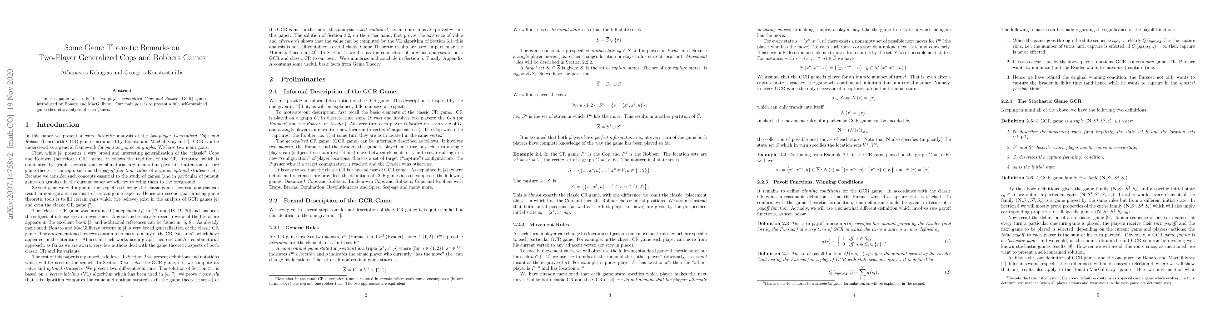 In this paper we study the two-player generalized Cops and Robber (GCR) games introduced by Bonato and MacGillivray. Our main goal is to present a full, self-contained game theoretic analysis of such games.