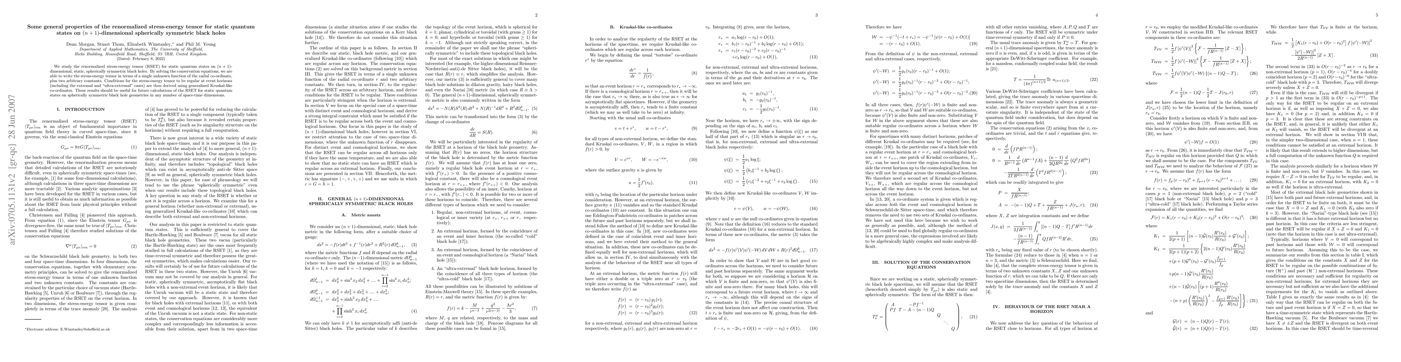 We study the renormalized stress-energy tensor (RSET) for static quantum states on (n+1)-dimensional, static, spherically symmetric black holes. By solving the conservation equations, we are able to write the stress-energy tensor in terms of a single unknown function of the radial co-ordinate, plus two arbitrary constants. Conditions for the stress-energy tensor to be regular at event horizons (including the extremal and ``ultra-extremal'' cases) are then derived using generalized Kruskal-like co-ordinates. These results should be useful for future calculations of the RSET for static quantum states on spherically symmetric black hole geometries in any number of space-time dimensions.