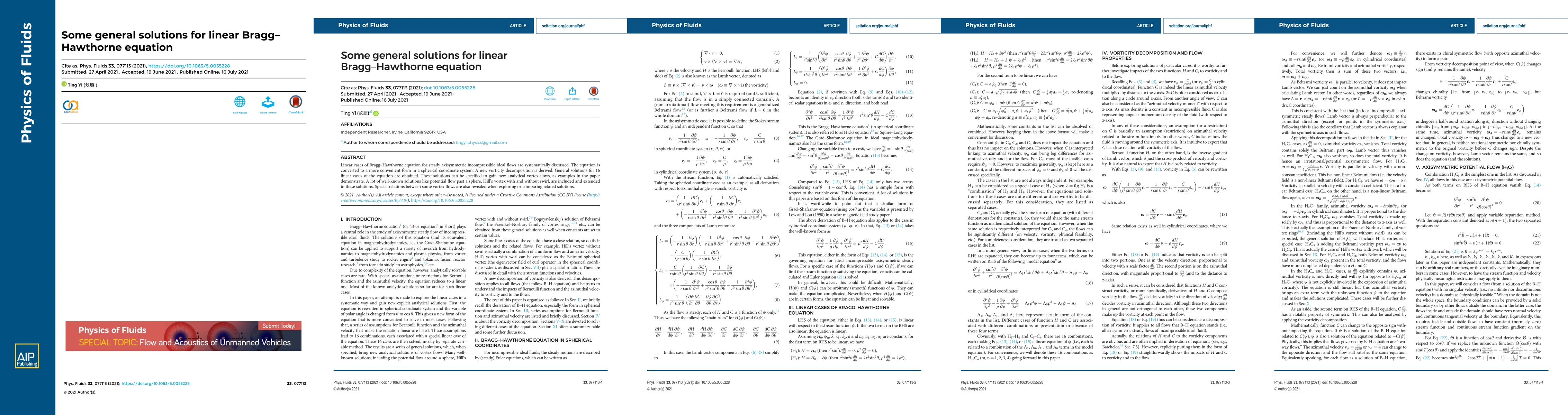 Linear cases of Bragg-Hawthorne equation for steady axisymmetric incompressible ideal flows are systematically discussed. The equation is converted to a more convenient form in a spherical coordinate system. A new vorticity decomposition is derived. General solutions for 16 linear cases of the equation are obtained. These solutions can be specified to gain new analytical vortex flows, as examples in the paper demonstrate. A lot of well_known solutions like potential flow past a sphere, Hill's vortex with and without swirl, are included and extended in these solutions. Special relations between some vortex flows are also revealed when exploring or comparing related solutions.