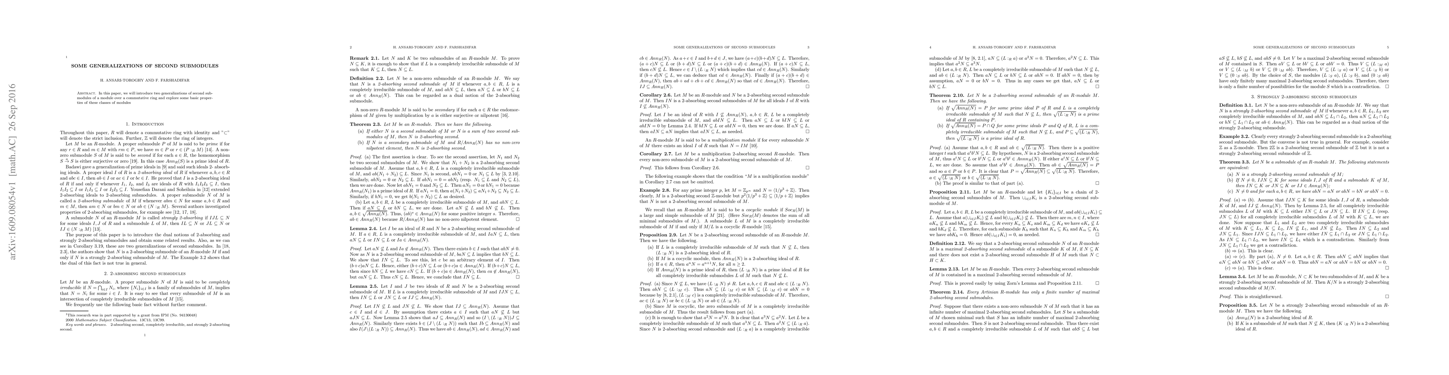 Summary: This paper presents two novel generalizations of second submodules in modules over commutative rings, and investigates fundamental properties of these new module classes.