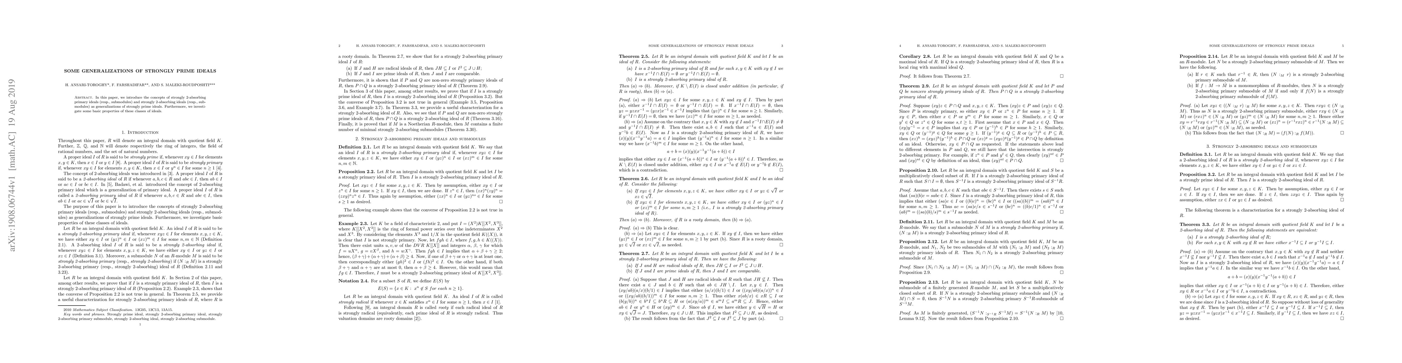 This paper introduces strongly 2-absorbing primary and strongly 2-absorbing ideals as generalizations of strongly prime ideals, and explores their fundamental properties. The study extends the concept of strongly prime ideals to broader classes.