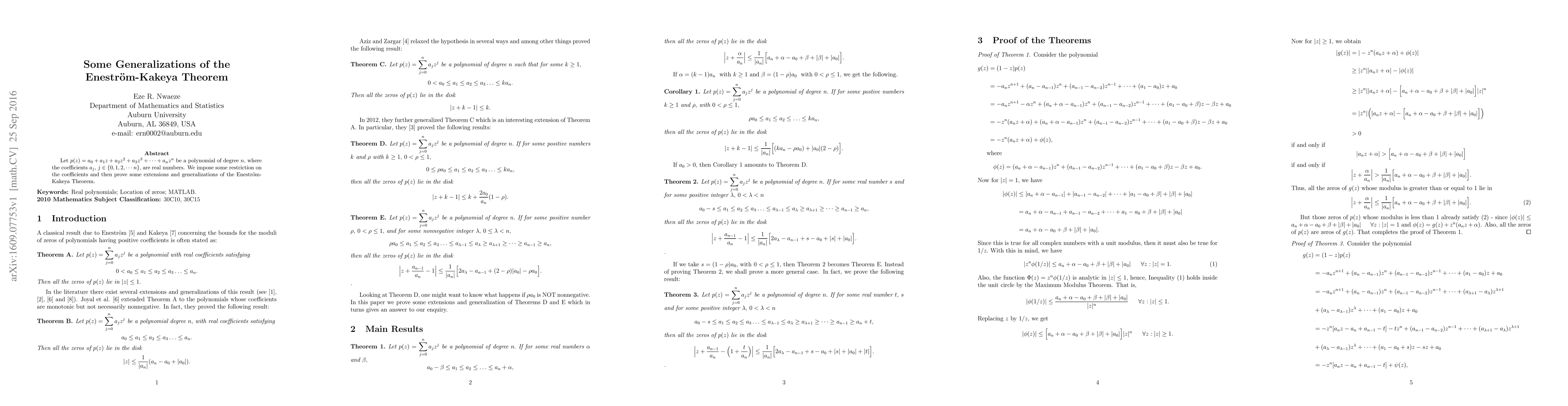 This paper generalizes the Enestr\"om-Kakeya Theorem by imposing specific restrictions on the coefficients of a polynomial and proving extensions and new results based on these constraints. The focus is on the geometric properties of polynomials under these conditions.