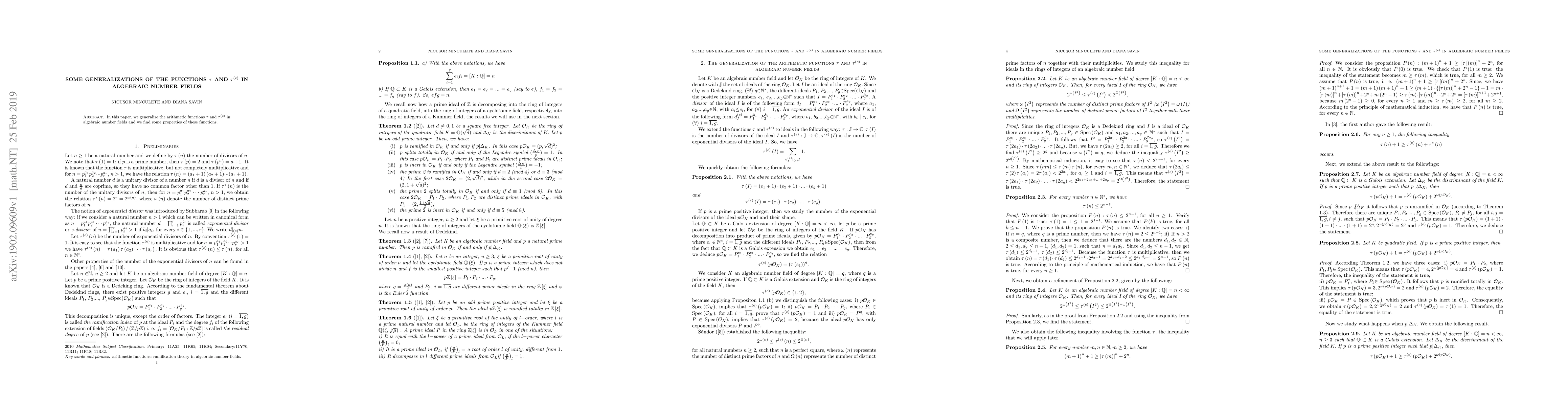 Summary: This paper generalizes the arithmetic functions $\tau$ and $\tau^{(e)}$ in algebraic number fields, exploring their properties and establishing new mathematical insights.