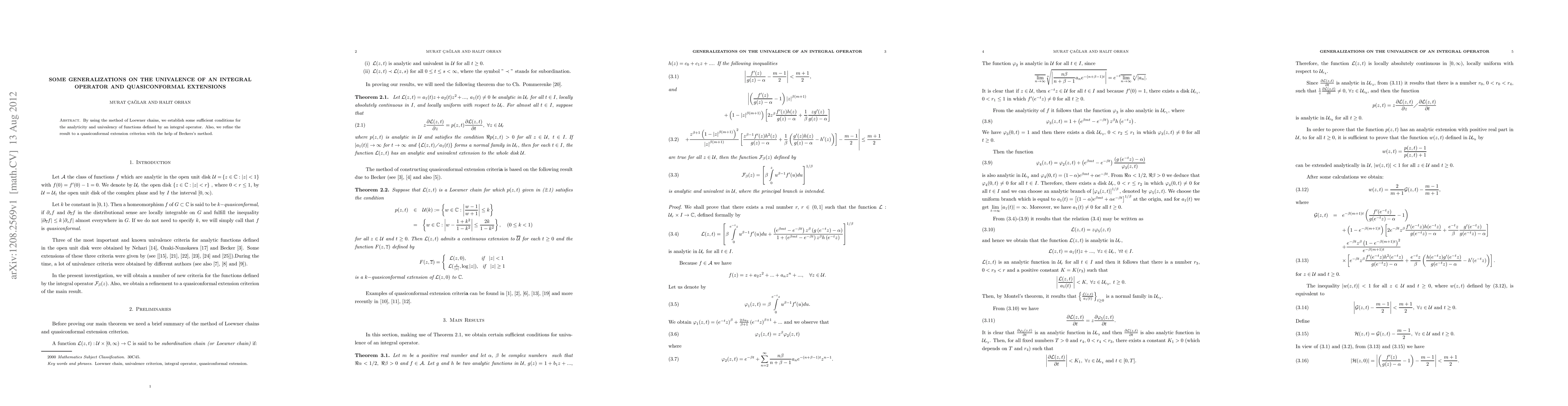 This paper establishes sufficient conditions for the analyticity and univalence of functions defined by an integral operator using Loewner chains and extends the result to quasiconformal extensions using Beckers's method. The study aims to generalize these properties in complex analysis.