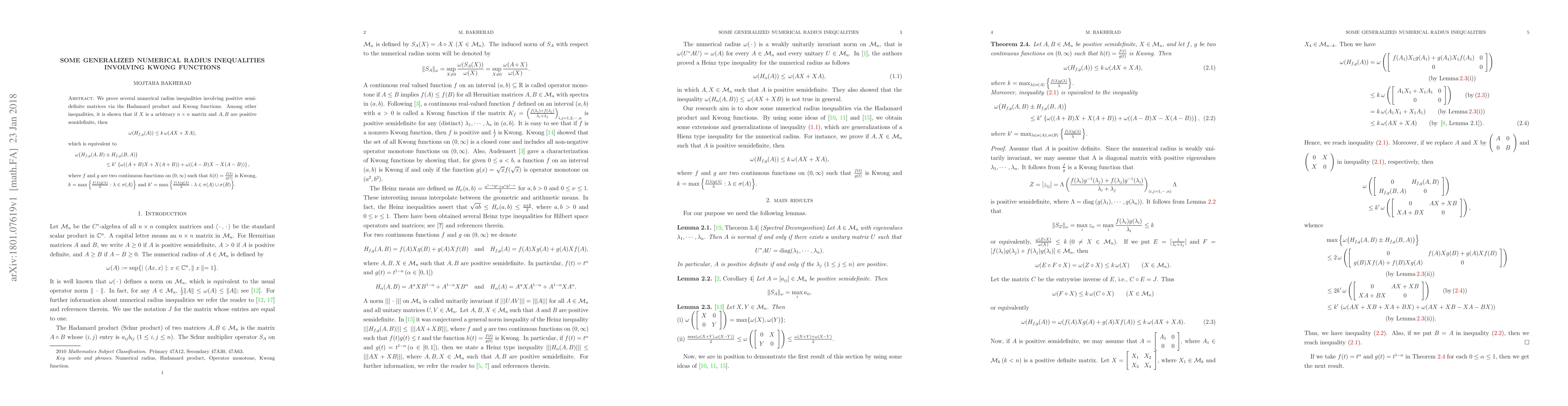 Researchers prove new inequalities involving positive semidefinite matrices using Hadamard product and Kwong functions, with potential applications in numerical analysis.