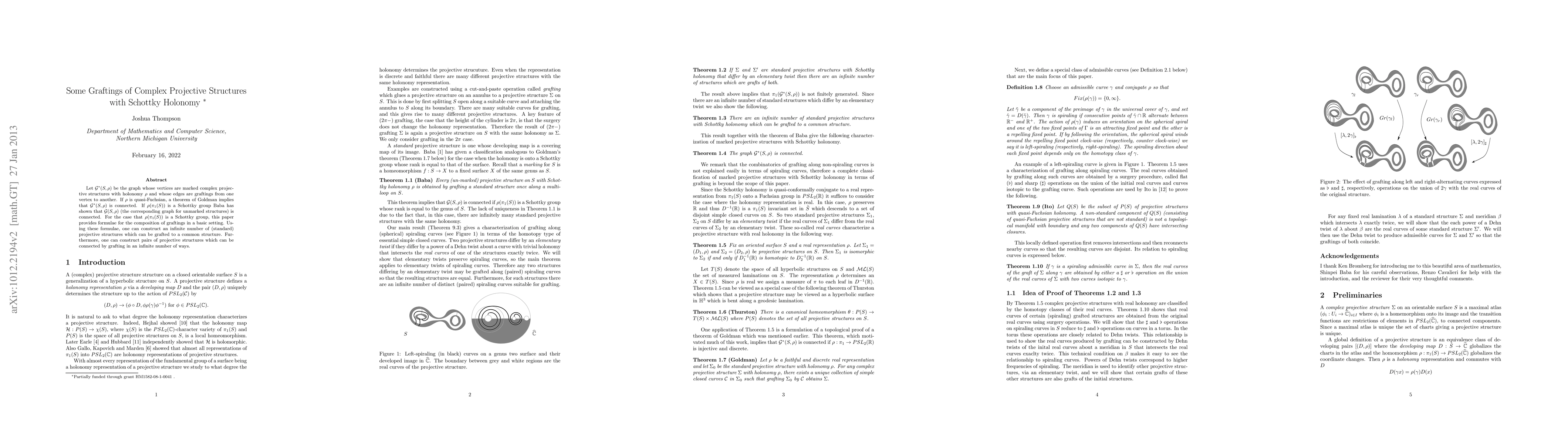 Let $\mathcal{G}^*(S,\rho)$ be the graph whose vertices are marked complex projective structures with holonomy $\rho$ and whose edges are graftings from one vertex to another. If $\rho$ is quasi-Fuchsian, a theorem of Goldman implies that $\mathcal{G}^*(S,\rho)$ is connected. If $\rho(\pi_1(S))$ is a Schottky group Baba has shown that $\mathcal{G}(S,\rho)$ (the corresponding graph for unmarked structures) is connected. For the case that $\rho(\pi_1(S))$ is a Schottky group, this paper provides formulae for the composition of graftings in a basic setting. Using these formulae, one can construct an infinite number of (standard) projective structures which can be grafted to a common structure. Furthermore, one can construct pairs of projective structures which can be connected by grafting in an infinite number of ways.