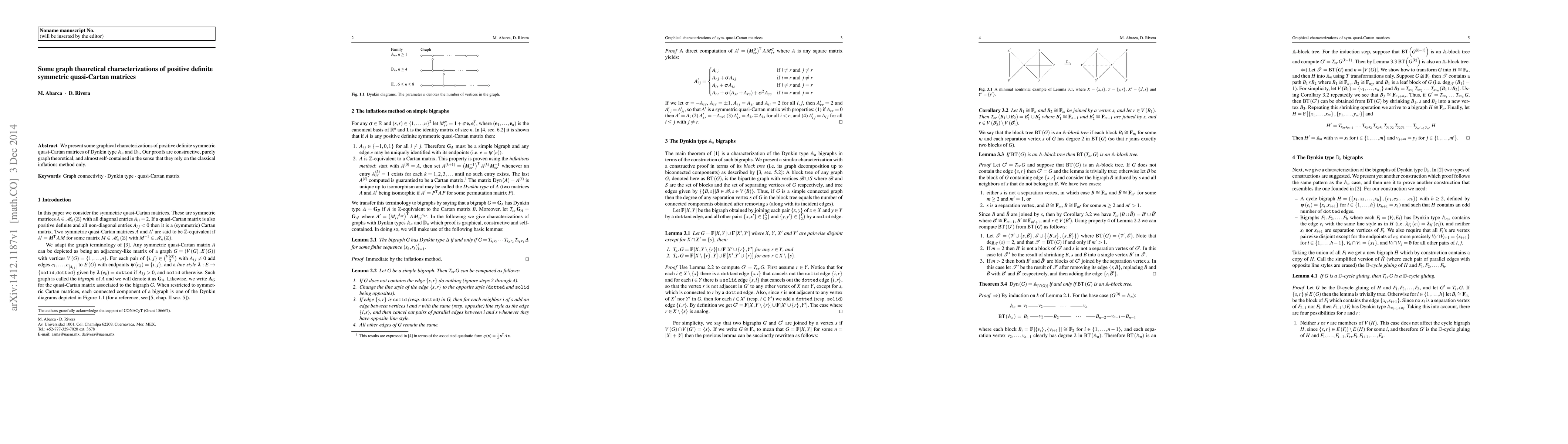 We present some graphical characterizations of positive definite symmetric quasi-Cartan matrices of Dynkin type $\mathbb{A}_{n}$ and $\mathbb{D}_{n}$. Our proofs are constructive, purely graph theoretical, and almost self-contained in the sense that they rely on the classical inflations method only.