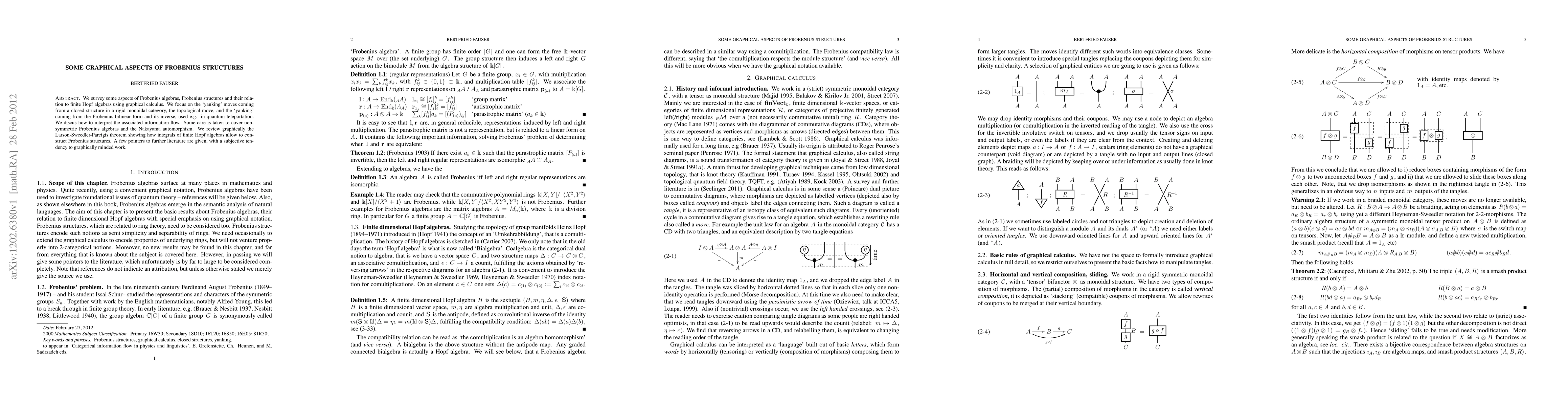 We survey some aspects of Frobenius algebras, Frobenius structures and their relation to finite Hopf algebras using graphical calculus. We focus on the `yanking' moves coming from a closed structure in a rigid monoidal category, the topological move, and the `yanking' coming from the Frobenius bilinear form and its inverse, used e.g. in quantum teleportation. We discus how to interpret the associated information flow. Some care is taken to cover non-symmetric Frobenius algebras and the Nakayama automorphism. We review graphically the Larson-Sweedler-Pareigis theorem showing how integrals of finite Hopf algebras allow to construct Frobenius structures. A few pointers to further literature are given, with a subjective tendency to graphically minded work.