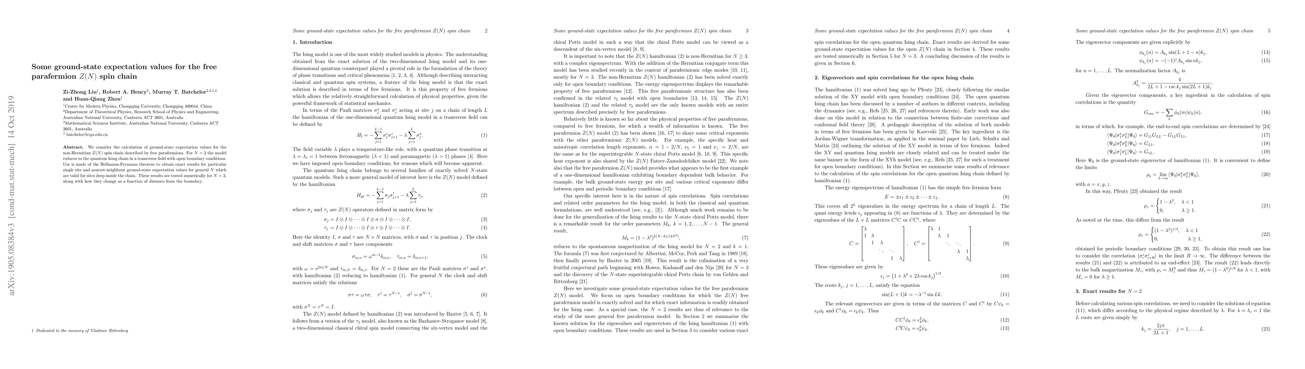 This paper calculates exact ground-state expectation values for the non-Hermitian Z(N) spin chain using the Hellmann-Feynman theorem, focusing on sites deep inside the chain. Numerical tests for N=3 show how these values change with distance from the boundary.