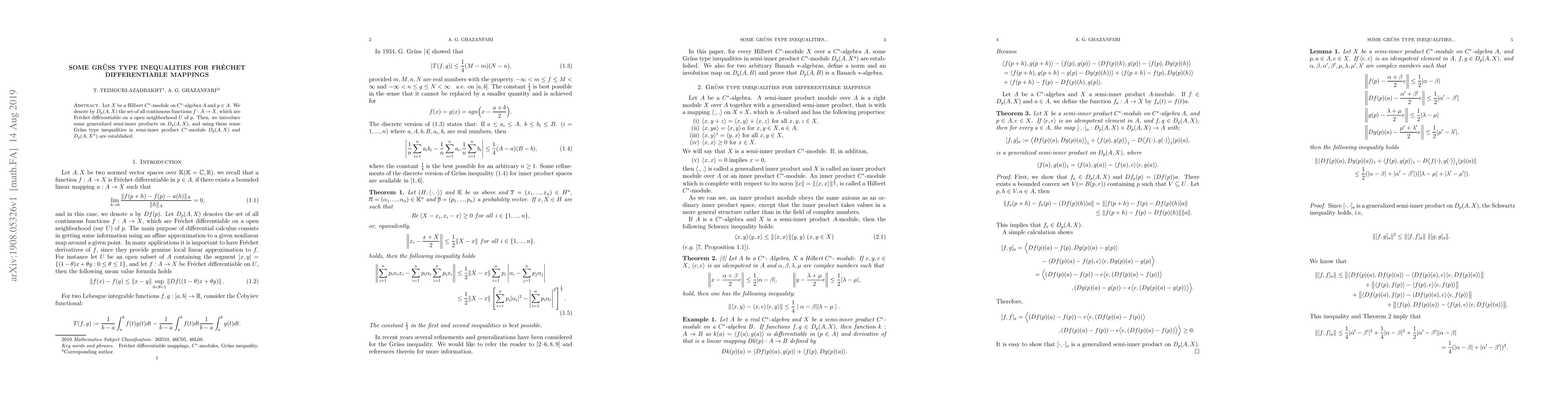 This paper establishes Gruss type inequalities for Frechet differentiable mappings in a Hilbert C*-module on a C*-algebra A, extending previous results to higher powers of the module.