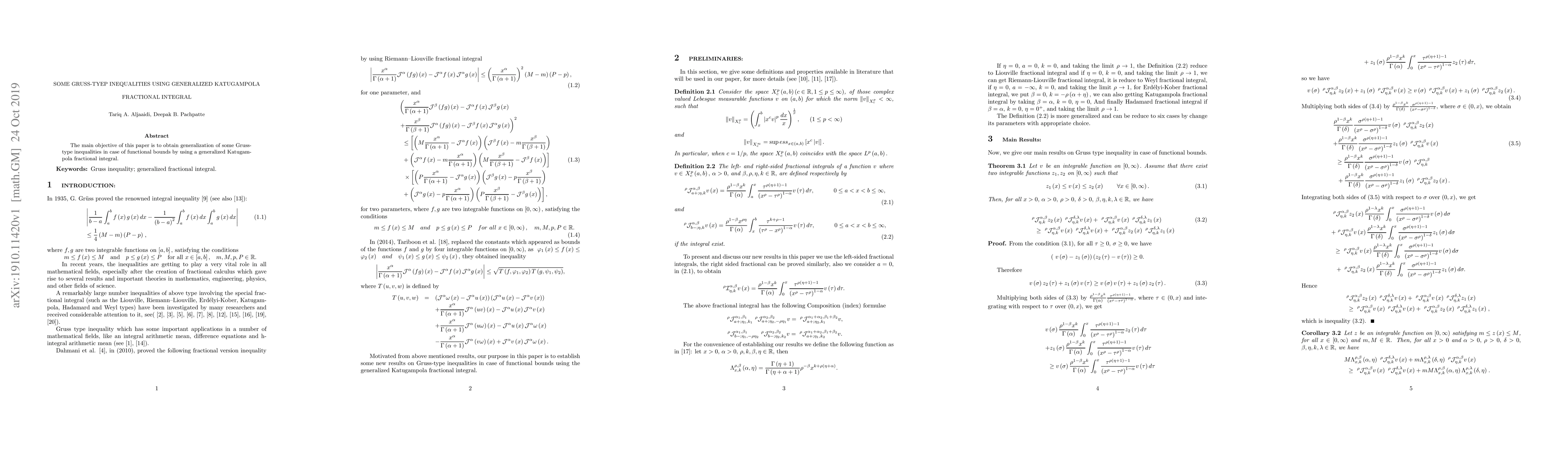 This paper generalizes some Gruss-type inequalities using a generalized Katugampola fractional integral to provide new functional bounds. The study employs advanced fractional calculus techniques to achieve these generalizations.