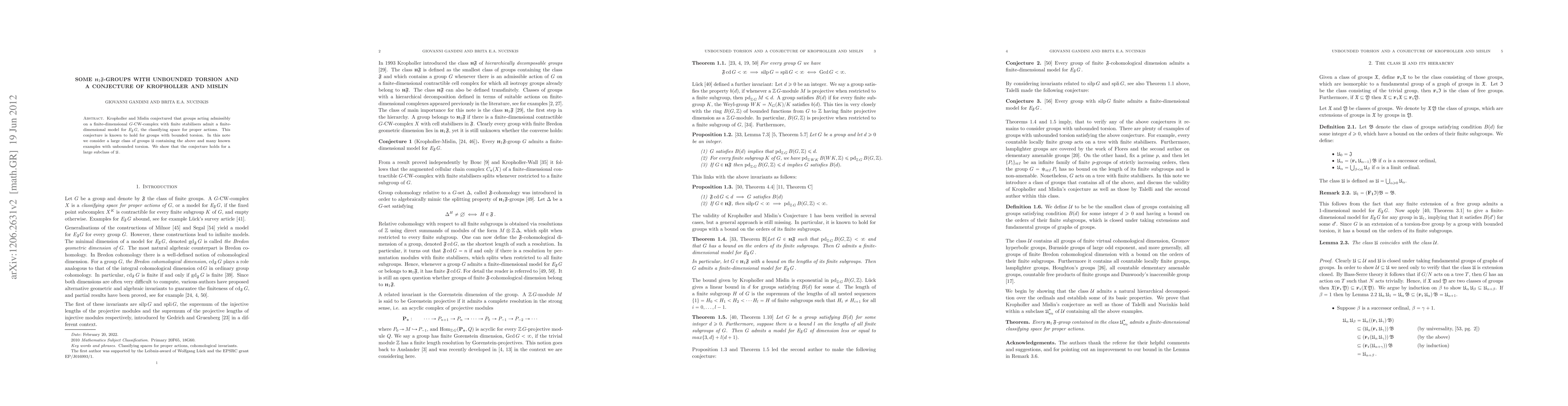 Kropholler and Mislin conjectured that groups acting admissibly on a finite-dimensional G-CW-complex with finite stabilisers admit a finite-dimensional model for E_FG, the classifying space for proper actions. This conjecture is known to hold for groups with bounded torsion. In this note we consider a large class of groups U containing the above and many known examples with unbounded torsion. We show that the conjecture holds for a large subclass of U.