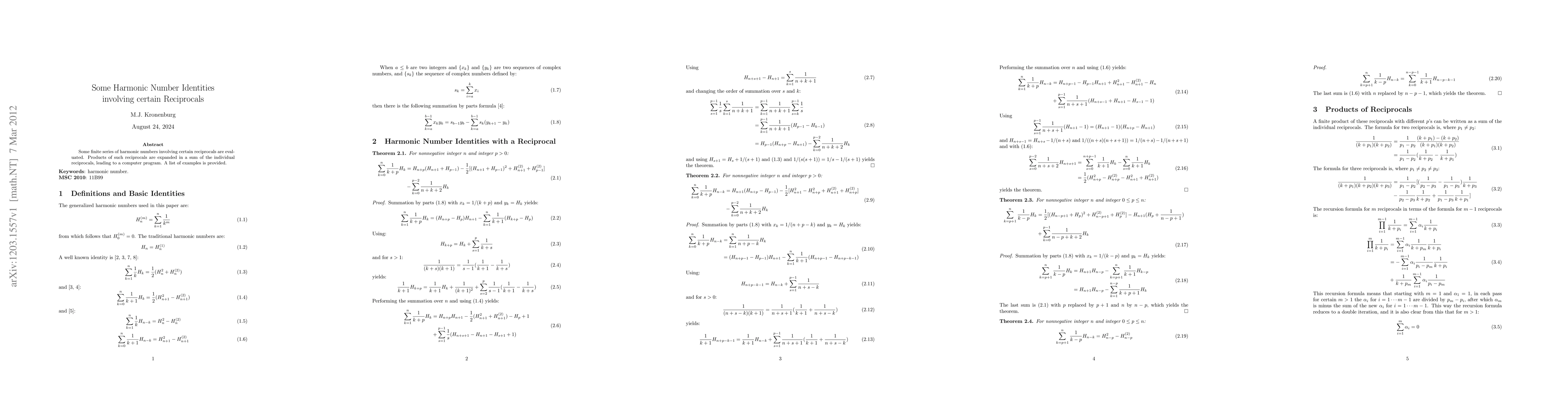 This paper evaluates finite series of harmonic numbers involving specific reciprocals and expands products of these reciprocals into a sum of individual reciprocals, facilitating the development of a computer program to compute these identities. Examples are provided to illustrate the results.