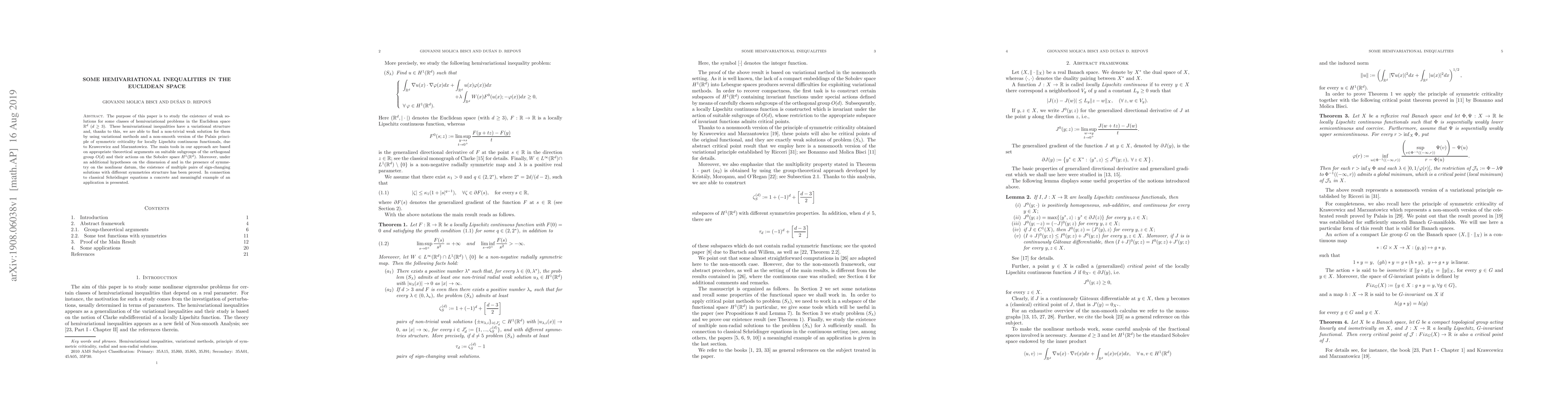 Researchers studied existence of weak solutions for hemivariational inequalities in Euclidean space, using variational methods and group theory to prove the existence of multiple sign-changing solutions with different symmetries.