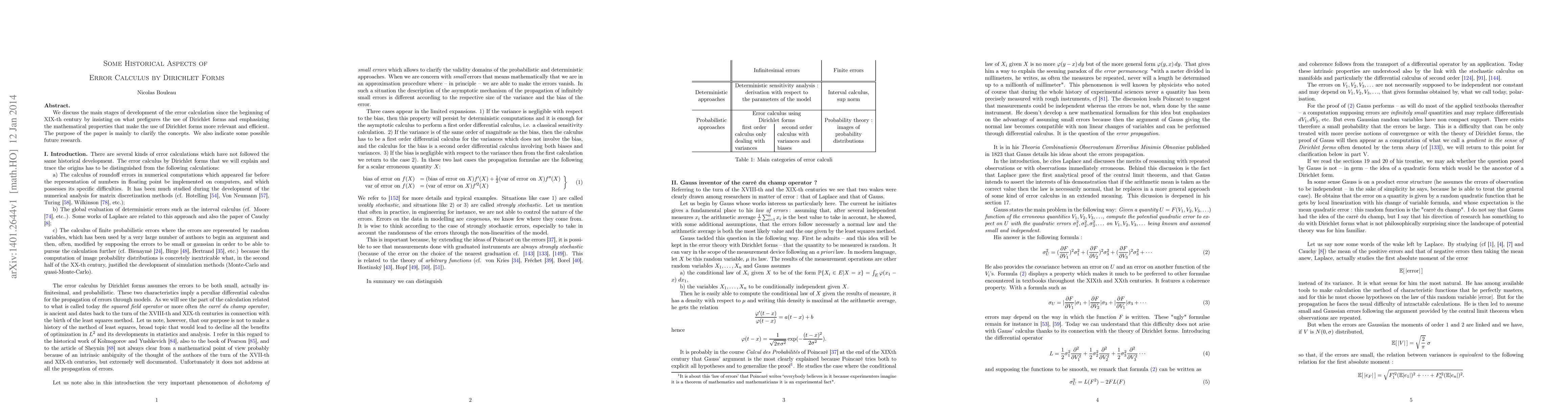 We discuss the main stages of development of the error calculation since the beginning of XIX-th century by insisting on what prefigures the use of Dirichlet forms and emphasizing the mathematical properties that make the use of Dirichlet forms more relevant and efficient. The purpose of the paper is mainly to clarify the concepts. We also indicate some possible future research.