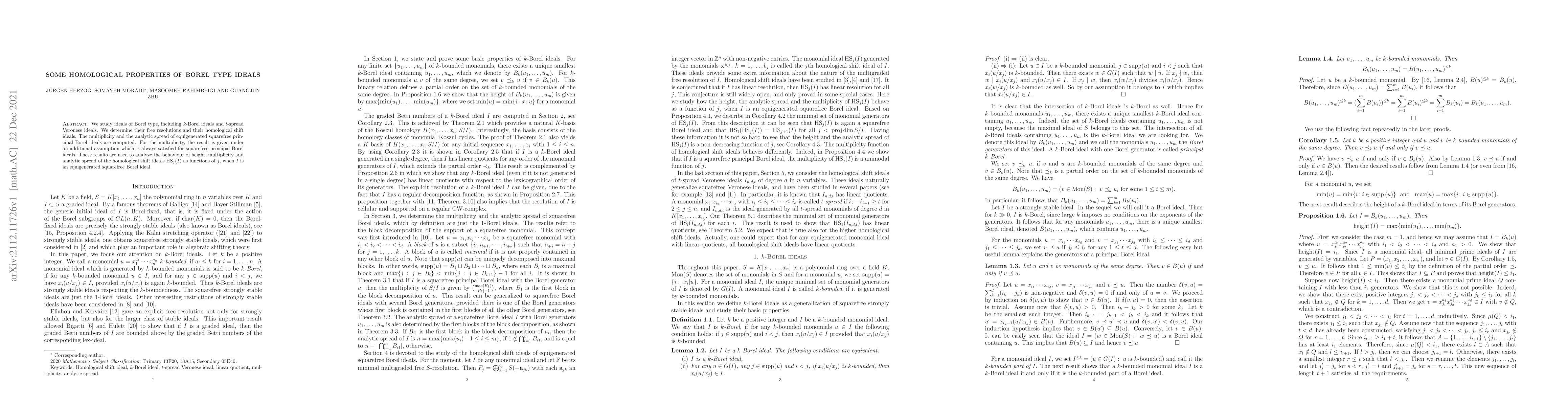 We study ideals of Borel type, including $k$-Borel ideals and $t$-spread Veronese ideals. We determine their free resolutions and their homological shift ideals. The multiplicity and the analytic spread of equigenerated squarefree principal Borel ideals are computed. For the multiplicity, the result is given under an additional assumption which is always satisfied for squarefree principal Borel ideals. These results are used to analyze the behaviour of height, multiplicity and analytic spread of the homological shift ideals $HS_j(I)$ as functions of $j$, when $I$ is an equigenerated squarefree Borel ideal.