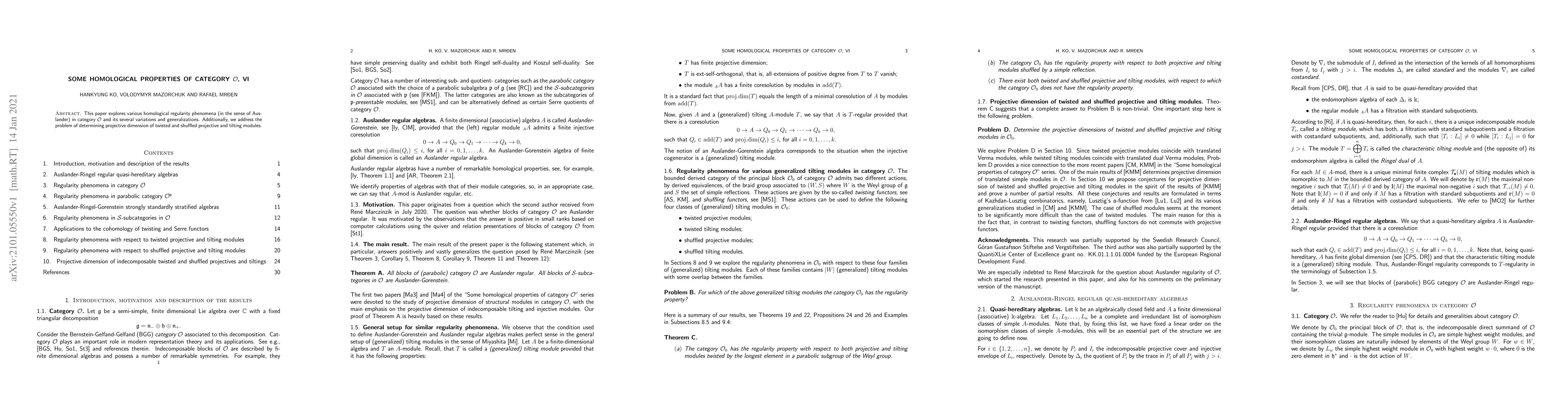 This paper investigates homological regularity in category $\mathcal{O}$ and related modules, focusing on determining the projective dimensions of twisted and shuffled projective and tilting modules.
