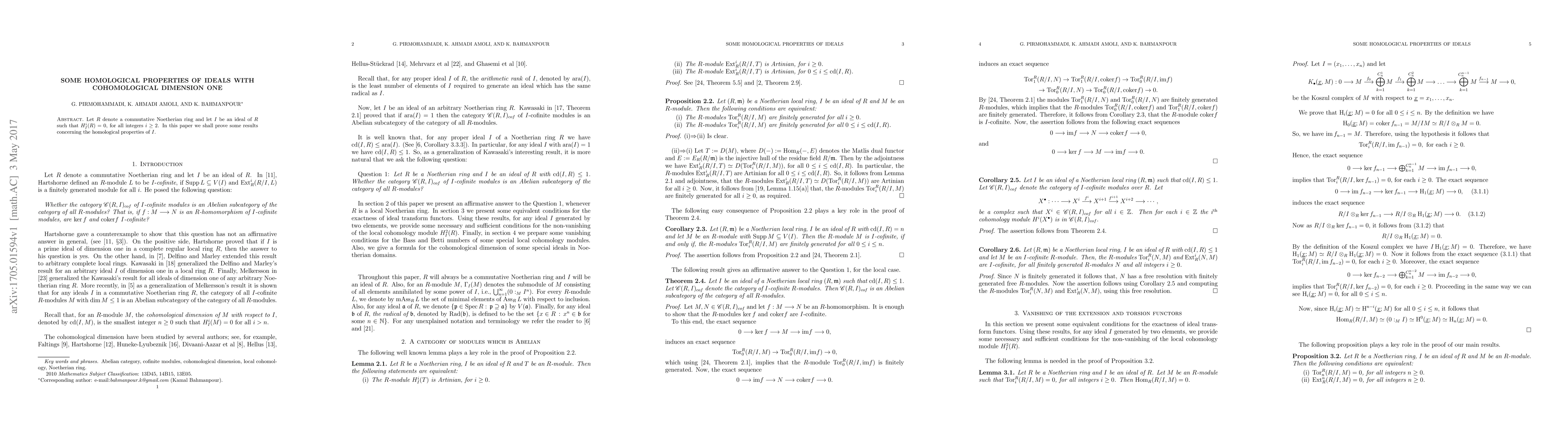 Let R denote a commutative Noetherian ring and let I be an ideal of R such that H_i^I(R) = 0, for all integers i greater than or equal to 2. In this paper we shall prove some results concerning the homological properties of I.