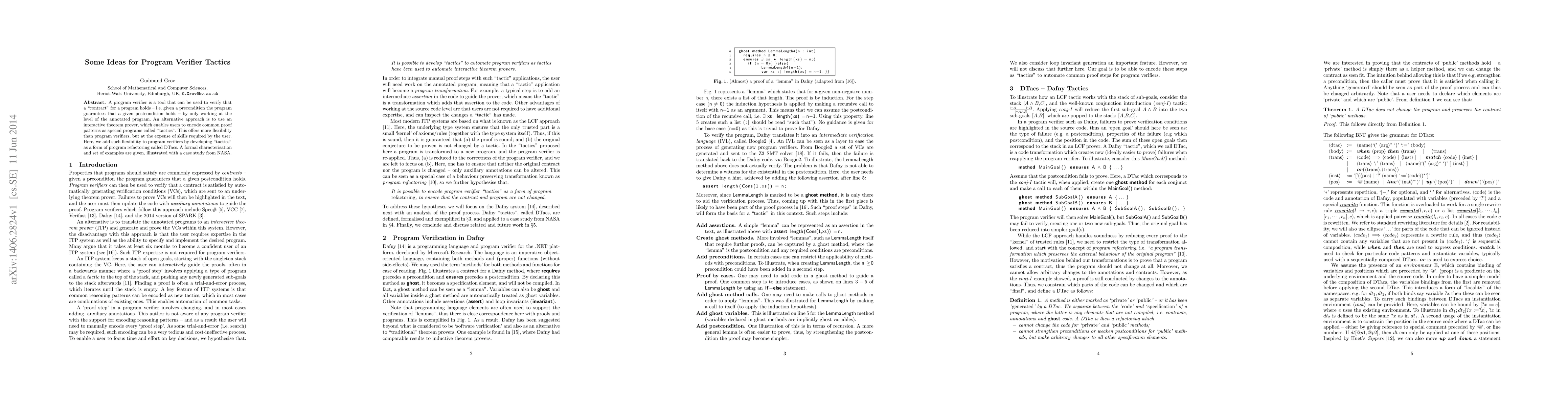 This paper introduces DTacs, a method to enhance program verifiers by incorporating tactics, which are refactored forms of program refactoring, to provide more flexibility akin to interactive theorem provers without requiring advanced user skills. A formal characterization and a case study from NASA demonstrate its application.