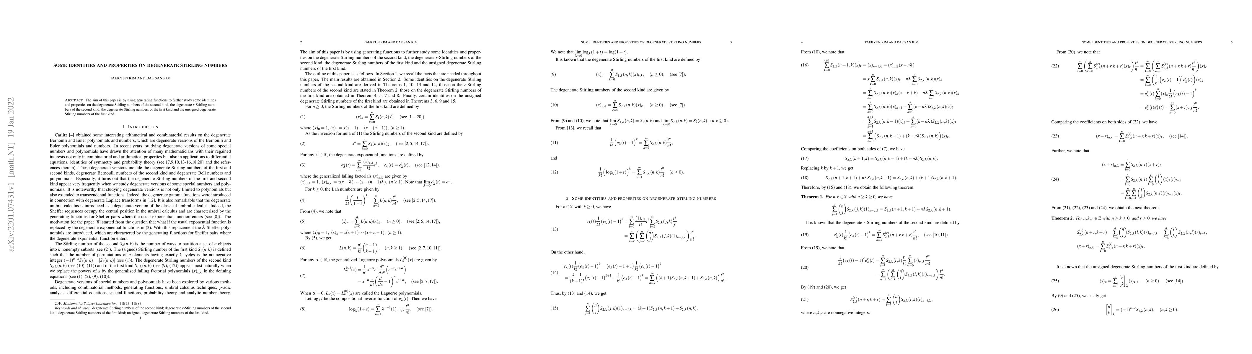 This paper investigates identities and properties of various degenerate Stirling numbers using generating functions, focusing on the second kind, $r$-Stirling numbers of the second kind, the first kind, and unsigned first kind.