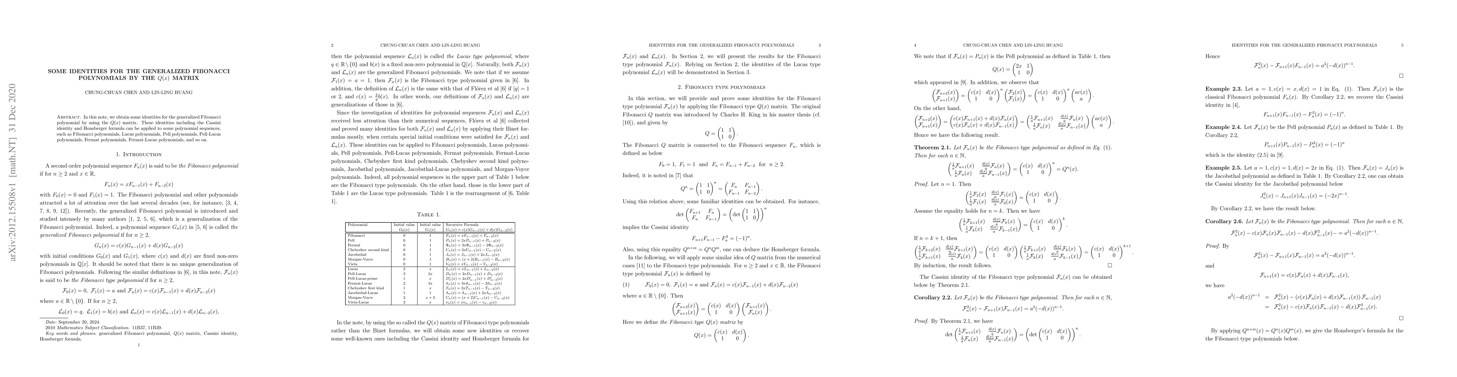 This paper derives several identities for generalized Fibonacci polynomials using the Q(x) matrix, including the Cassini identity and Honsberger formula, which are applicable to various polynomial sequences like Lucas, Pell, and Fermat polynomials.