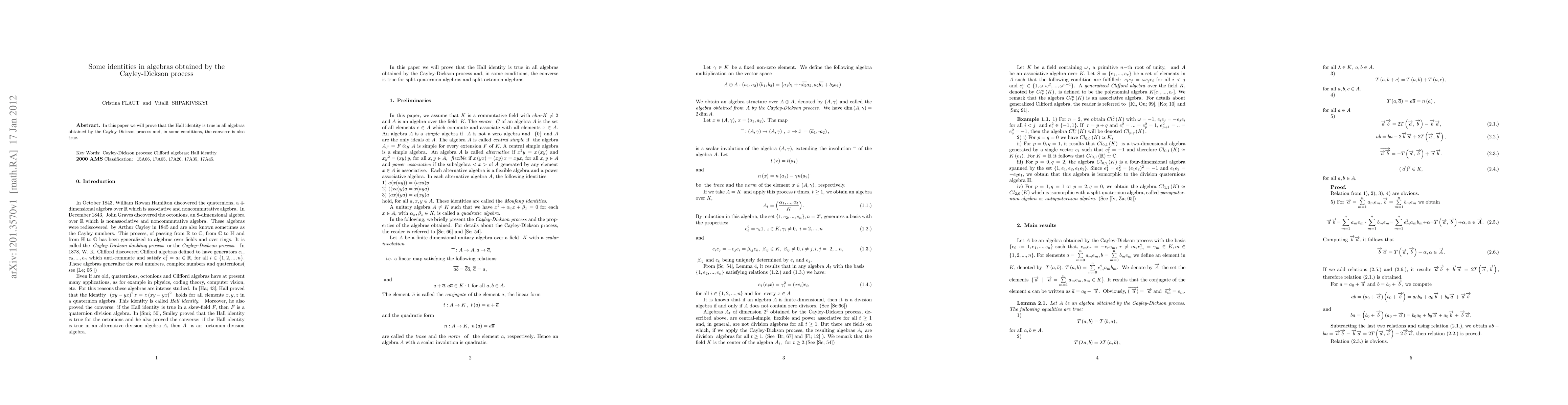 **Summary:** This paper demonstrates the validity of the Hall identity in all algebras derived via the Cayley-Dickson process and explores under what conditions the converse holds true.