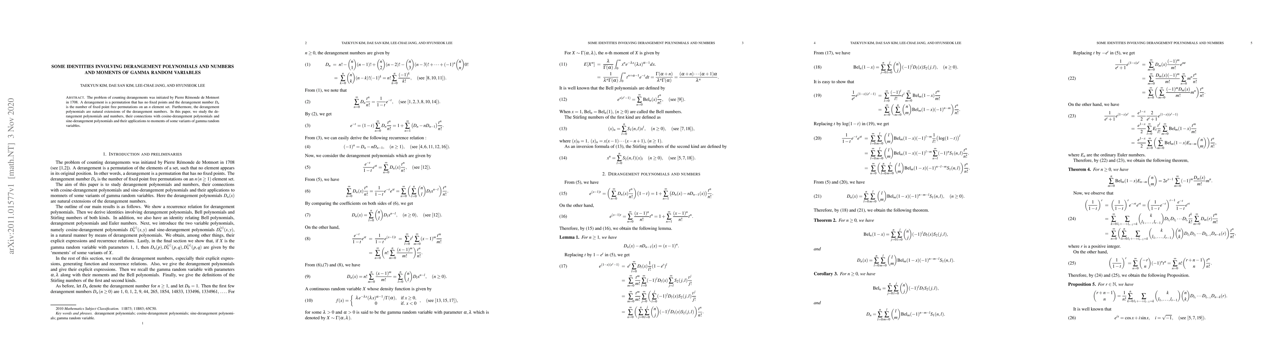This paper explores derangement polynomials and numbers, extending the historical study of derangements, and investigates their links with cosine-derangement and sine-derangement polynomials. It also applies these concepts to moments of gamma random variables.