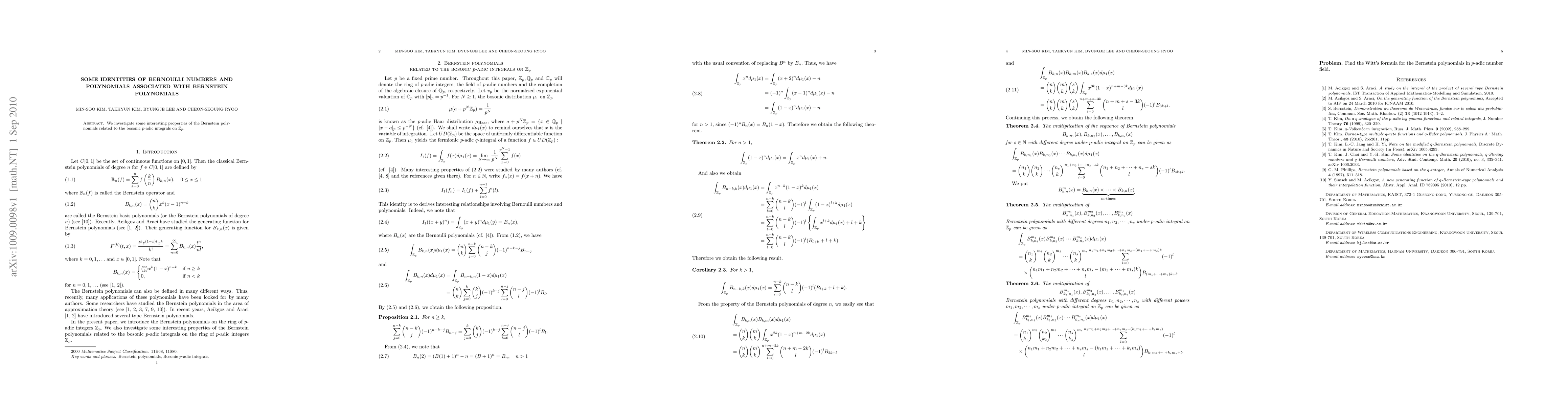 Summary: This paper explores properties of Bernstein polynomials linked to Bernoulli numbers and polynomials, particularly in the context of boson p-adic integrals on Zp. The study highlights unique identities and relationships within this mathematical framework.