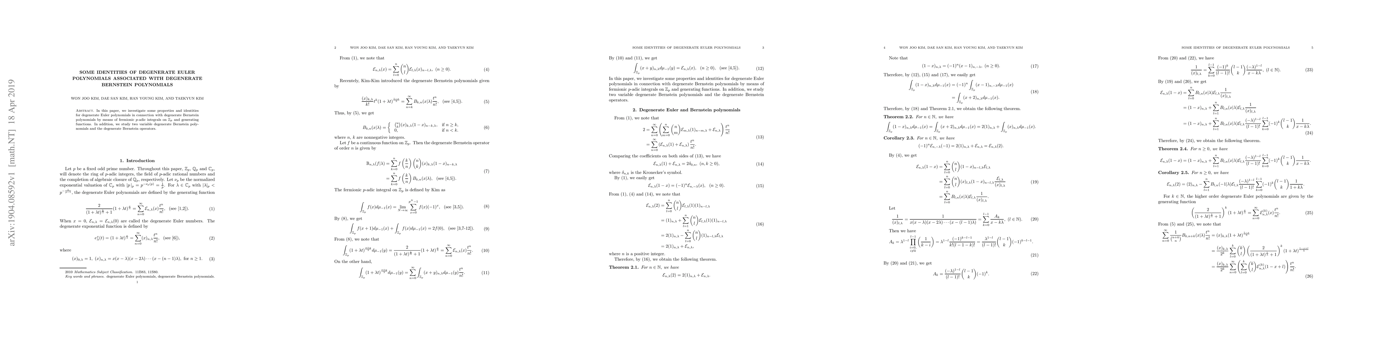 This paper explores properties and identities of degenerate Euler polynomials linked to degenerate Bernstein polynomials using fermionic p-adic integrals on Zp and generating functions. It also examines two-variable degenerate Bernstein polynomials and their associated operators.
