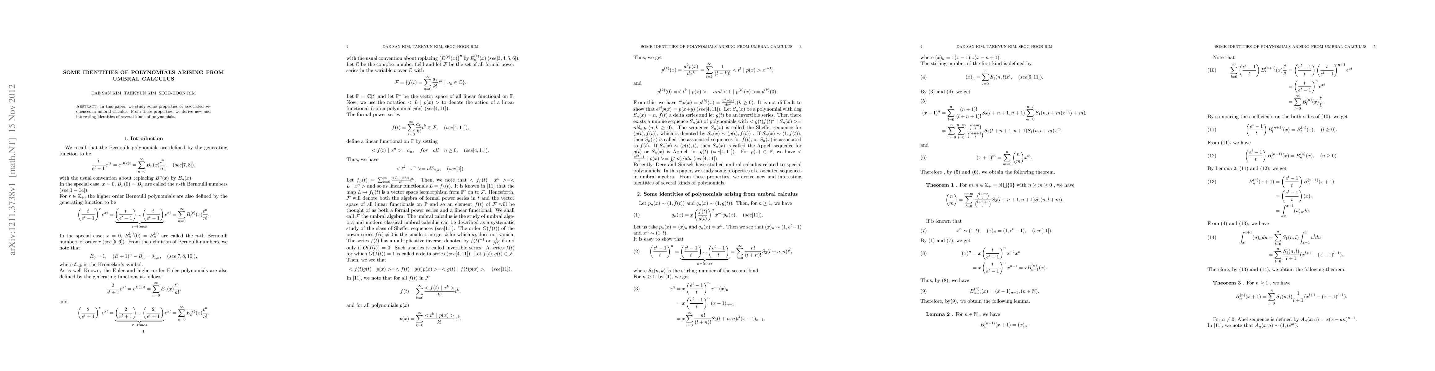 This paper explores properties of associated sequences in umbral calculus, leading to the derivation of novel identities for various types of polynomials. The findings contribute to the understanding of polynomial relationships within umbral calculus.